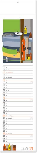 Streifebkalender deutsch HYGGELIG mit Klappfälzel | Papier: 150 g Bilderdruck matt | Rückwand 500 g Graukarton | Format: 13 x 53,5 cm | mit Informationen und Tipps und Postkarteauf den Rückseiten