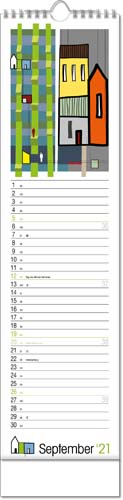 Streifenkalender deutsch HYGGELIG mit Wire-O Drahtbindung |Papier: 150 g Bilderdruck matt | verlängerte Rückwand 350 g weißer Karton | Format: 13 x 52,5 cm | mit Informationen und Tipps und Postkarte auf den Rückseiten