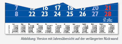 HIT 3 Monatskalender | deutsch-mehrsprachig | Druck auf Klappfälzel |Datumsweiser umgelegt | mit verlängerte Rückwand 30 x 52 cm | Farbe für Vor u. Nachmonat grau-blau-d.grau | Hauptmonat weiß