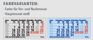 JUNIOR-4 | flatbarer 4-Monats-Kalender | deutsch-mehrsprachig | Farbe für Vor u. Nachmonat grau oder blau | Hauptmonat weiß | Metallöse | Datumweiser umgelegt | Rückwand mit internationaler Feiertags- und deutscher Ferienübersicht