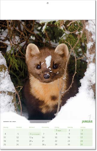 Bildkalender deutsch BLICK INS TIERREICH mit Klappfälzel | Papier: 100 g Bilderdruck glänzend | Rückwand 400 g Graukarton | Format: 24 x 37,5 cm | mit Informationen und Tipps auf den Rückseiten