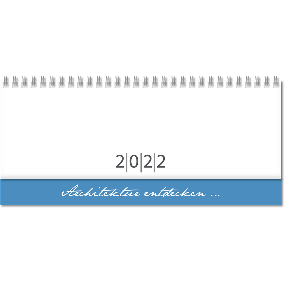 Tischquerkalender "TOP", Format: 30,5 x 13,5 cm, Kalendarium: 1-sprachig D, Umfang: 128 Seiten, je Woche zwei Seiten, Einband: Karton,