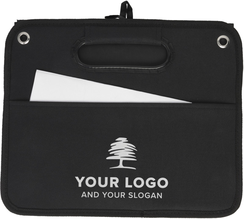 Car-Organizer "Big Daddy" ist aus Polyester (600D)/PU mit Befestigungsösen aus Metall. Er ist faltbar, besitzt zwei stabile Hauptfächer, ein Seitenfach und zwei Netzfächer.