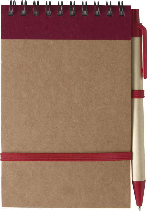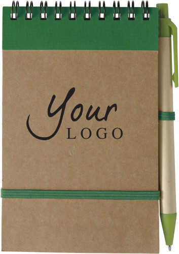 Notizbuch "Pocket" aus recyceltem Karton mit Ringbindung und farbigen Applikationen, 70 linierten Blättern und Kugelschreiber aus Karton/Kunststoff mit blauer Mine.