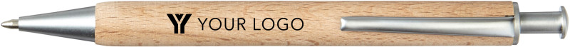 Kugelschreiber "Toronto" aus Buchenholz, mit Metall-Clip, Spitze und blauer Mine.