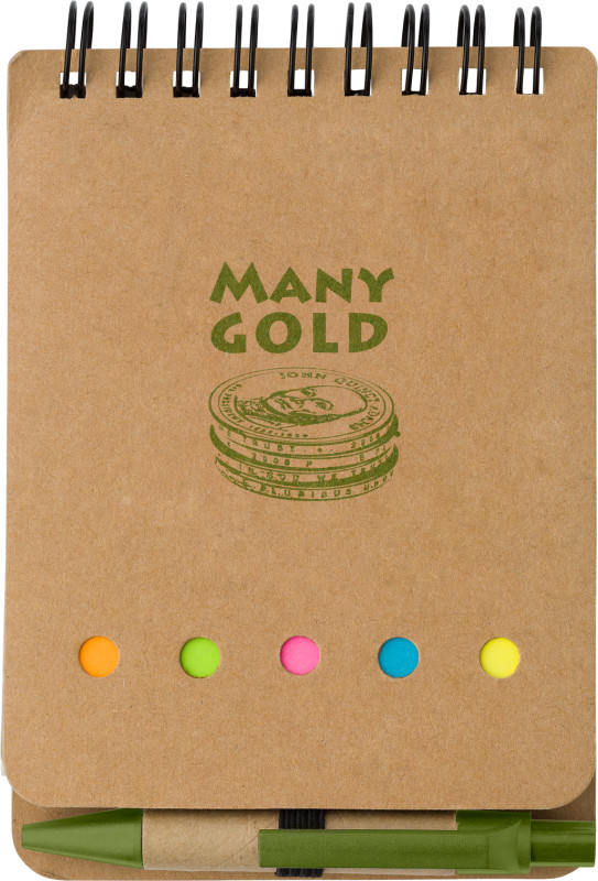 Notizbuch "Premier" aus Karton. Ringbuch mit 60 linierten Blättern, 5x 20 kleinen Haftmarkern und 50 großen Haftnotizen