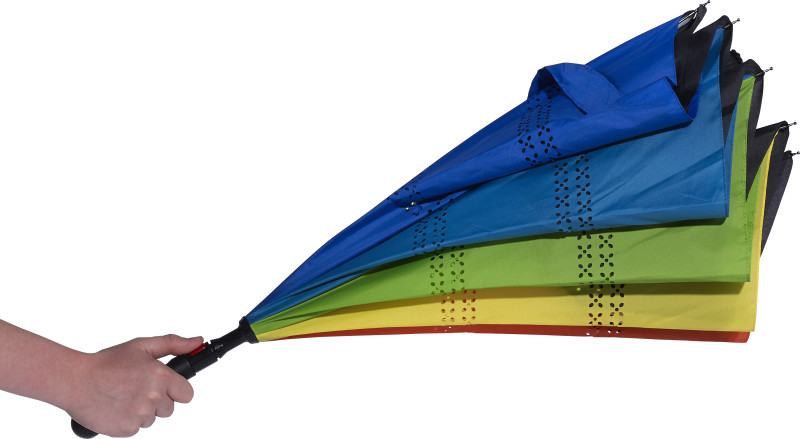 Automatischer, reversibler - umkehrbarer Regenschrm "Arc" aus Pongee mit acht Segmenten. Der Schaft, sowie der Rahmen bestehen aus Metall, Fiberglas-Gestänge, Griff aus Kunststoff. Der Schirm öffnet automatisch.