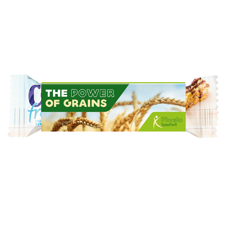 Corny Müsliriegel im Werbeschuber aus weißem Karton| individuell bedruckt | Müsliriegel der Marke Corny (nur sortenrein) | 25 g | 20 g | Haltbarkeit: 6 Monate