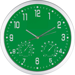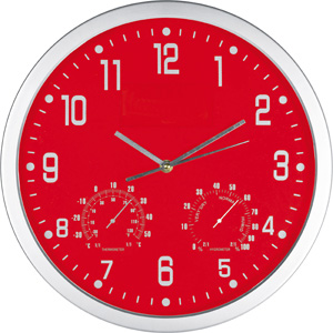 Schick und schlicht - somit ideal für Ihre Werbung ist diese Wanduhr mit Hygrometer und Thermometer. Ihre Werbung wird auf dem Werbeplättchen unterhalb der Zwölf angebracht.
