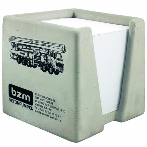 Speicher aus Beton problemlos recycelbar | Papier holzfrei weiß Offset inklusive | Speicherformat: 11.8 x 11.8 x 11 cm | Zettelformat 8.4 x 6.8 cm | Einzelblattbedruckung auf Abfrage