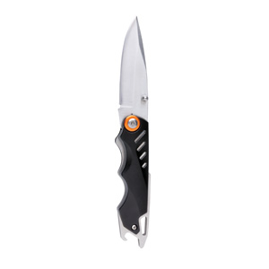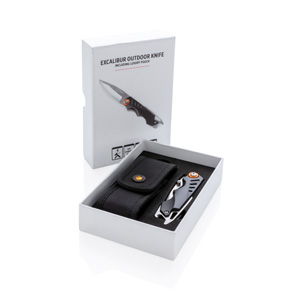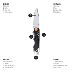 Massives Messer im 1680D Etui sowie Geschenkbox verpackt. Aluminiumgehäuse, die Tools aus Edelstahl. Mit Gürtelclip und Flaschenöffner.