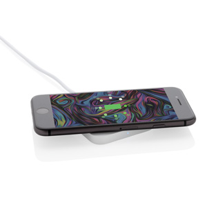 "Der Wireless Charger bietet mit seiner ABS Oberfläche viel Platz für einen großflächigen All-Over Digitaldruck und der LED-Indikator bestätigt Ihnen den Ladevorgang. Komptabil mit allen QI-fähigen Geräten wie den Androids der neusten Generation sowie ab