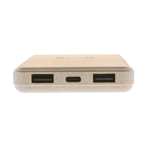 Diese 8.000 mAh Powerbank mit integriertem Wireless-Charger hat ein Gehäuse aus Kork und Weizenstroh ( 35%) gemischt mit ABS. Die Ladung der Powerbank kann sowohl über Mirco-USB als auch Type-C erfolgen. Eine volle Ladung der 8.000 mAh Lithium-Polymer A-G