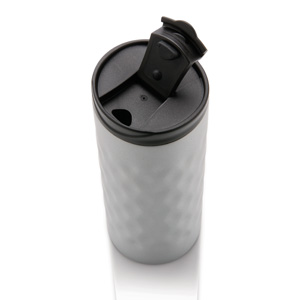 Doppelwandiger Becher aus Edelstahl mit trendigem, geometrischem Cut-Design. Inhalt: 350ml.