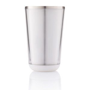 Trendiger Kaffeebecher aus Edelstahl mit geometrischem Muster und Griff, der bequem unter fast alle Kaffeemaschinen passt. Der Griff und das Innere sind aus PP gefertigt. Fassungsvermögen 380ml