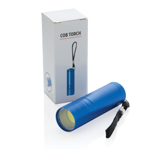 Superhelle COB-Leuchte im Taschenformat. COB ist heller ist das althergebrachte LED und benötigt dabei noch weniger Energie - kann somit bis zu 30% länger leuchten. Aluminiumgehäuse mit Trageriemen. Inkl. 3xAAA-Batterien