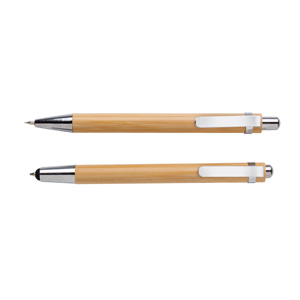 Bambus Schreibset in Geschenkverpackung. Bambus-Stylus mit blauer Tinte und Bleistift mit 3 Stück 0,7mm Minen.