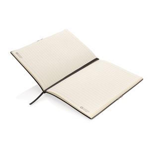 Liniertes Hardcover Notizbuch mit elastischem Verschlußband und Seitentrenner im B5 Format, 19x25cm. 144 cremefarbene Seiten, 70g/qm