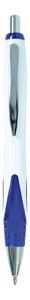 Kugelschreiber Menorca | Kunststoff-Schaft Opak Weiß | Gefrostete Griffzone , farbig | Metallclip, glänzende Beschläge | | Kunststoff-GM-Mine Schreibfarbe blau